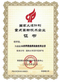 国家火炬计划重点高新技术企业证书