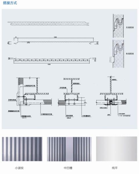 明钉搭接式墙面板搭接方式:隐钉插口式、Z型锁口式