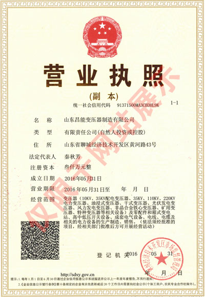 昌能变压器制造有限公司网站由中国电梯招标网制做维护。内容真实性及解释权归昌能变压器制造有限公司负责。